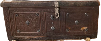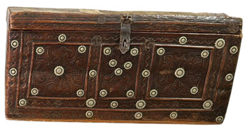 Дерево, кожа, теснение, декорировка серебряными медальонами. XVIII - XIX вв.